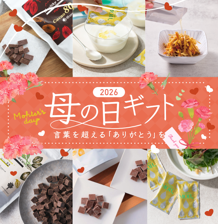 美味しい。でも、健康的。お母さんの毎日を彩り、体をいたわるヘルシーなチョコレートとDHAが摂れるMOILシリーズ。 あふれる感謝の気持ちを、特別な一箱に込めてお届けします。体を想う、贈りもの。言葉を超える『ありがとう』を。