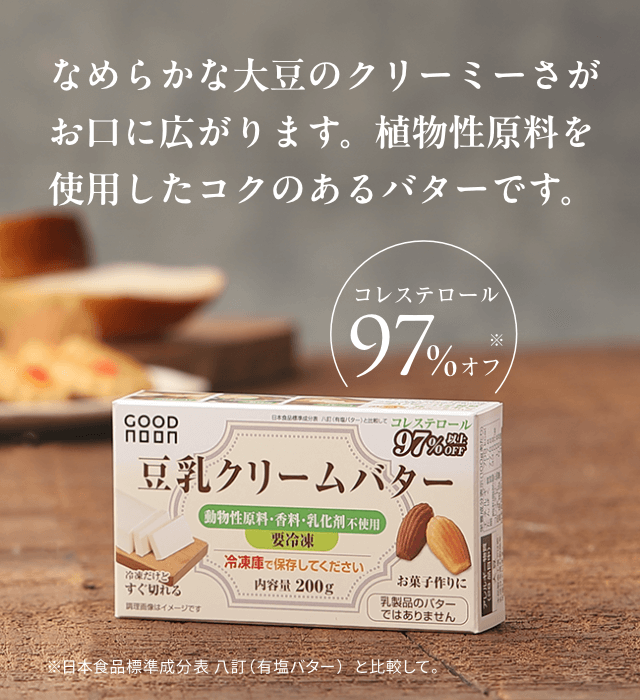 ※クール便(冷凍)でのお届けになりますので、他の商品との同時購入はできません。他商品も購入される場合は「豆乳クリームバター」のみ分けてご注文をお願いいたします。また「豆乳クリームバター」のご優待価格は本品のみを2点以上ご購入で適用されます。