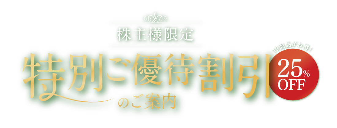日頃の感謝といたしまして、株主様限定の特別ご優待をご用意しました。この機会に、ぜひご利用ください。